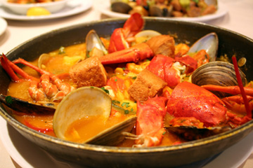 Shrimp, littlenecks, mussels, scallops, crab meat & 1/2 lobster served in a broth over toasted garlic bread, white rice on the side.